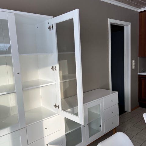 Skap med glasshyller og lys