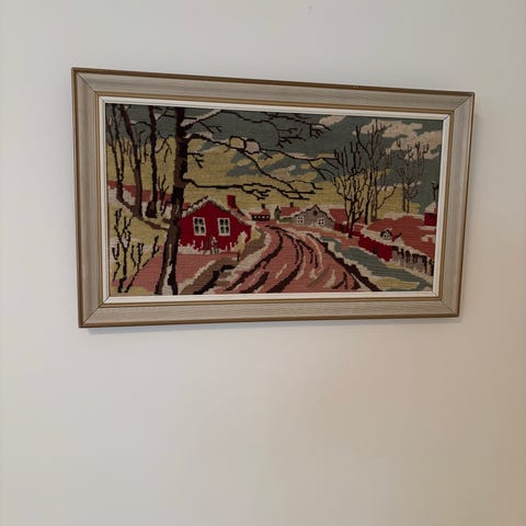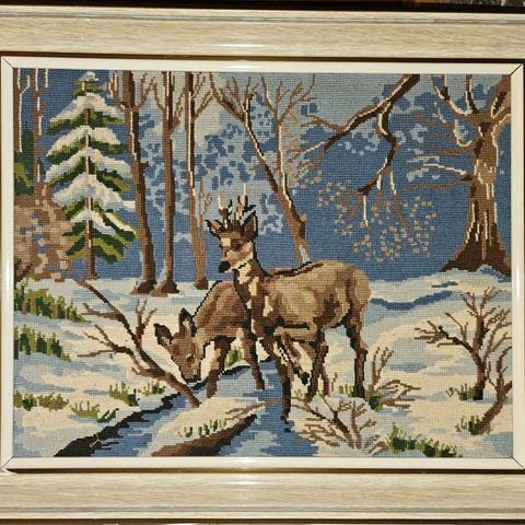Flott brodert motiv. Familiearv. Ukjent kunstner.