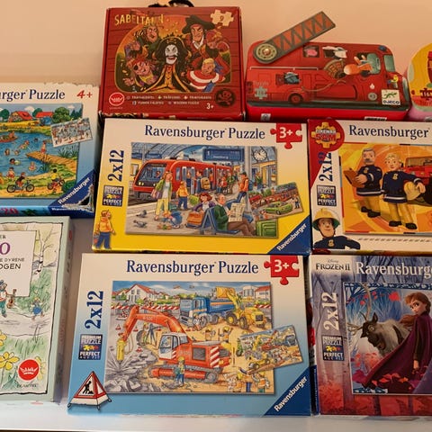 Selges samlet. Fine puslespill med fargerike motiver av dyr og kjøretøy.