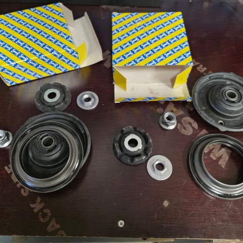 Kjøpte feil selges billig . De var møntert på bilen og kjørte kun par uke så de er neste nye. Toyota fjæringsdeler bestående av spiralfjærer og fjærbein topplager uten støtte ring, det må kjøpes i tillegg, men den koster veldig billig . Settet inneholder fjærer og tilhørende topplager/fjærskåler som brukes i bilens fjæringssystem. Delene er beregnet for montering i hjulopphenget foran , avhengig av spesifikasjon. Egnet som erstatning for originale fjæringskomponenter pakke slik som vist på bildene.Se andre bilde om den passer til bilen din.
