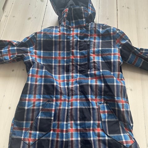 Burton jakke for herre i størrelse M. Jakken er laget i polyester og har to-farget design med rød hovedfarge og kontrastfelt øverst og på hetten. Modellen har fast hette, høy krage og full glidelås med knappestolpe. Flere frontlommer med klaff gir plass til oppbevaring av småting. Innsiden har glatte fôrpaneler og praktiske innerlommer. Egnet som ytterjakke til fritid og sport.