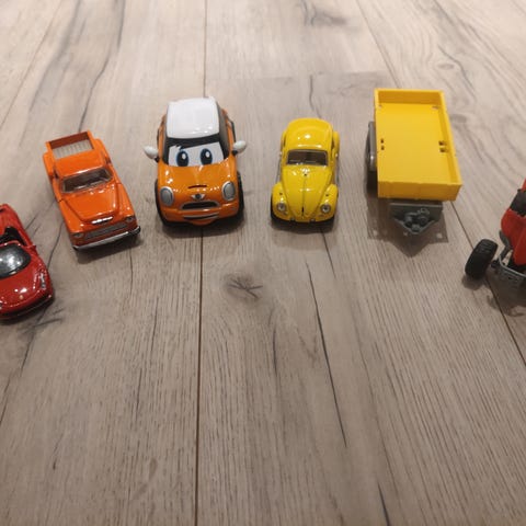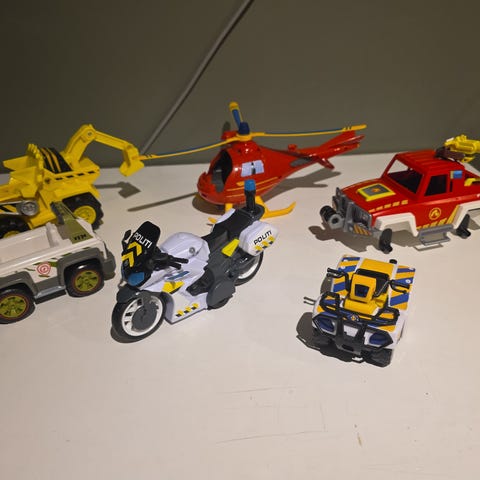 Begge fly, politibil, Volkswagen bil, raske bil og super Mario er med lyd.