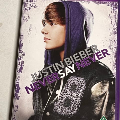 DVD-en inneholder konsertdokumentaren «Never Say Never» med Justin Bieber. Filmen følger artisten på og bak scenen, med opptak fra konserter, turnéliv og intervjuer. Utgivelsen kommer i standard DVD-plastomslag med én plate. Egnet for avspilling på DVD-spillere som støtter regionkoden angitt på omslaget.