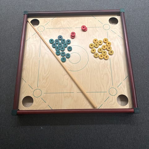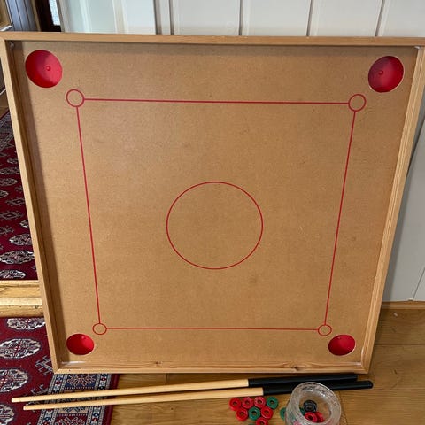 Selger et flott Xiangqi (kinesisk sjakk)-sett i solid tre, med ekte perlemorinnlegg i brett og brikker. Brettet har fine detaljer og god finish, og brikkene har tydelige røde og blå kinesiske tegn.
