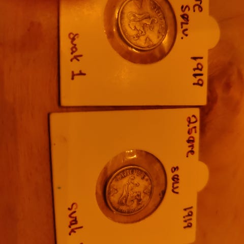 Dette er en norsk 2-kroners sølvmynt fra 1917 og 1912.