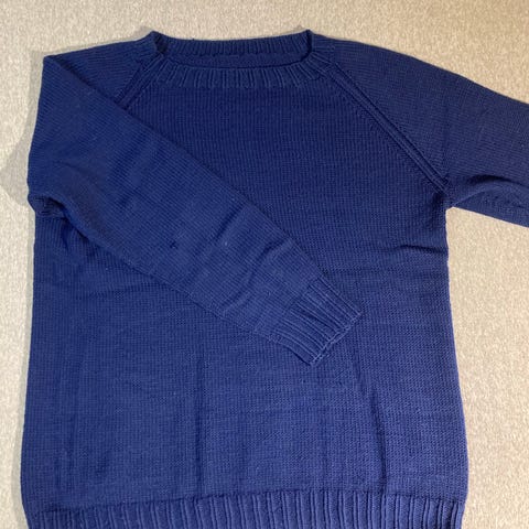 Den har en lite hull på ene ermet. Synes ikke i bruk da jeg har bretter armet opp over, men selger derfor billig.