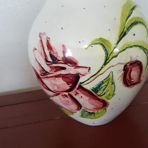 Laget i keramikk, glasert og håndmalt i flotte farger. Utrolig dekorativ.