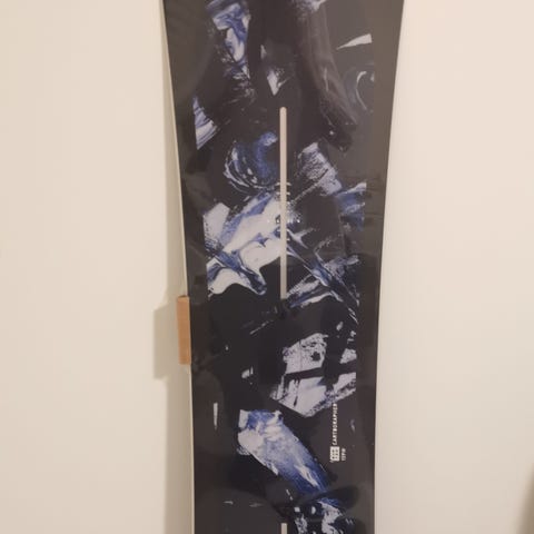 Ride snowboard med bindinger. Snowboardet har grafikk i svart, rød og hvit, med Ride-logo på topp og bunn. Monterte bindinger i svart plast og metall følger med. Egnet til bruk i alpinanlegg og generell snowboardkjøring.