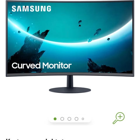 Samsung buet skjerm på 27 tommer. Skjermen har buet panel og hvit bakside med tilkoblinger som blant annet HDMI og DisplayPort (basert på synlige porter på bildene). Egnet som dataskjerm til generell bruk, kontorarbeid eller underholdning. Fot med rund base følger med, og skjermen kan vippes etter behov.