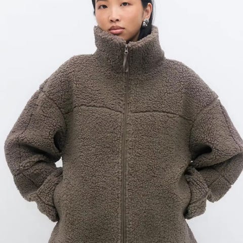 Svart, halvlang modell, stikklommer fremme pluss sidelommer og innerlommer.