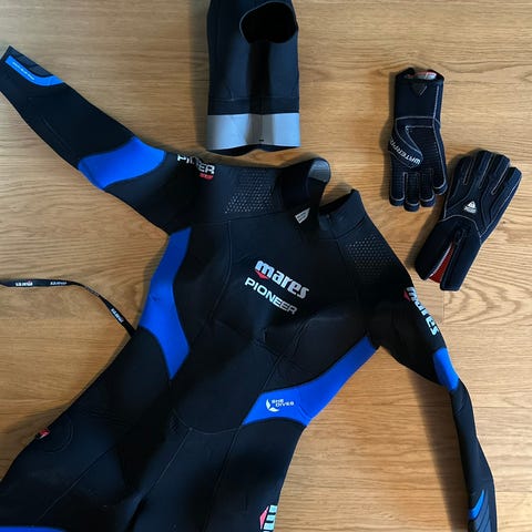 Scubapro våtdrakt. Neopren. Godt brukt se bilder for slitasje. Mansjett på et ben har en liten rift. Med boots har jeg aldri merket noe til det.