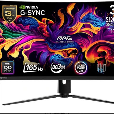 Selger min MSI 321URX 4K OLED 240hz gamingskjerm. Den ble kjøpt i september 2025. Det er en knalllgod skjerm, og den er kalibrert og klar for bruk.