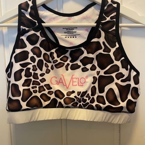 Ny Gavelo treningstights for dame i størrelse L. Tightsen har rosa og hvitt mønster med trykk og elastisk linning. Egnet til fitness og annen trening der det er behov for en tettsittende og fleksibel treningstights.