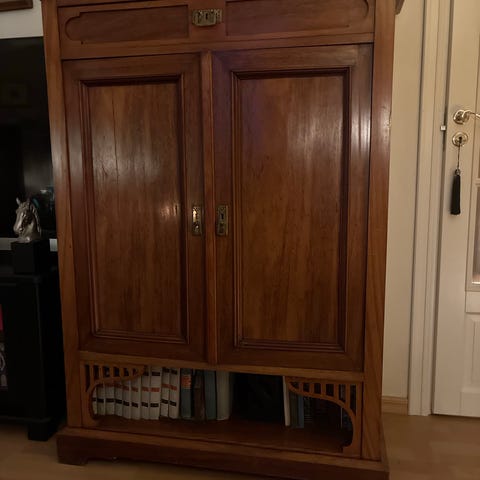 Vitrineskap og skjenk som hører til hverandre ser nesten nytt ut. Det antikke skapet har fått satt inn glass i dør lys og påført maling. Det er også en lilla 2seter og en 3 seter som er hel og fin med messing hjul på frambeina alt er velholdt selges kr 3000 for alt eller kom med bud på enkelt ting