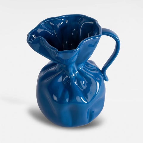 Settet består av to ulike mugger/karafler i klart glass, hvor den ene har helletut og den andre har tilhørende glasspropp. Begge har rund fot og mykt buet fasong. Klart glass gjør det enkelt å se innholdet.