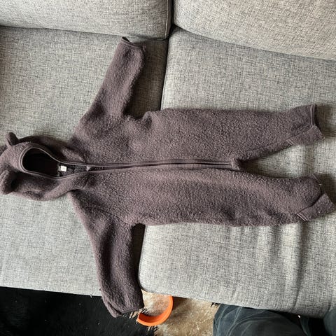 Verdens fineste dress fra Huttelihut i bomullsfleece, str 56/62. Helt ny, bare tok av lappen og glemte den helt av i skapet. Hadde samme dressen til storesøster og elsket den! Perfekt til sensitiv babyhud da den er laget av bomull men fortsatt god og varm som ull ☃️ Praktisk med hender og føtter som kan brettes ned, man slipper å passe på votter og sokker hele tiden. Rett og slett litt lei meg at den ikke ble brukt her og håper noen andre får glede av den 🥲🩵 Kjøpt ny i fjør til ca 700,-