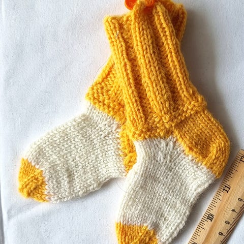 Fine håndstrikkede barnesokker i ull.