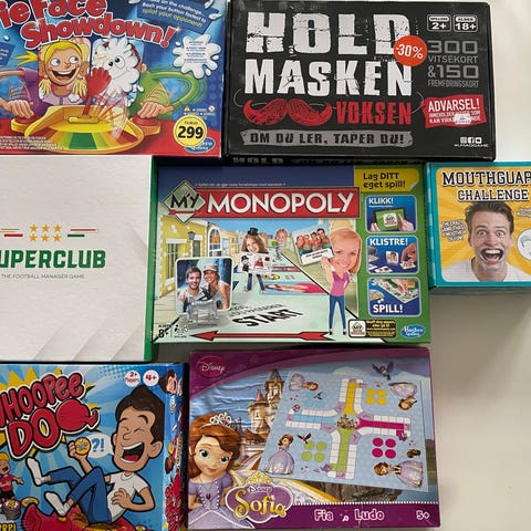 Blandet parti med brettspill og puslespill for barn. Pakken inneholder ulike typer familiespill, barnebrettspill og puslespill med motiver fra blant annet tegnefilmer og barnefigurer. Spillene passer for flere aldersgrupper av barn, og kan brukes både til familieaktiviteter og lek med venner. Innholdet består av flere esker med spill og puslespill i ulike størrelser og vanskelighetsgrader.