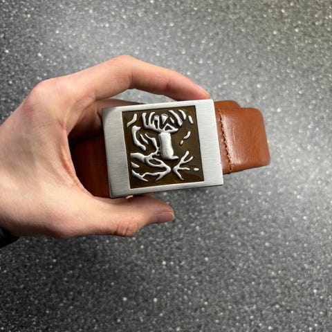 Klassisk og tidløst belte i ekte skinn med metallspenne i rektangulær form og diskret Tiger of Sweden-logo ved festet. Passer like godt til dress som til hverdagsbukser.