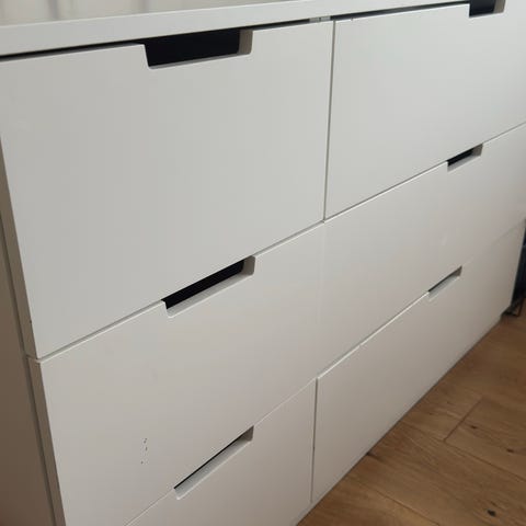 Pent brukt IKEA Nordli hvit kommode med 9 skuffer.