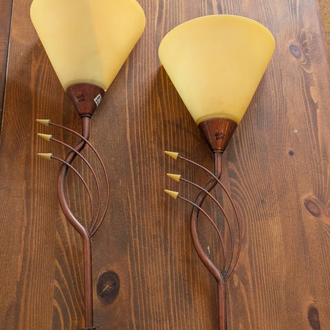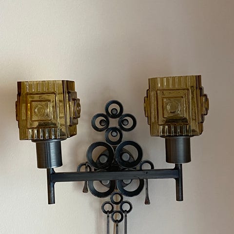 Vintage vegglampe i glass og messing fra midten av århundret, veggmontert