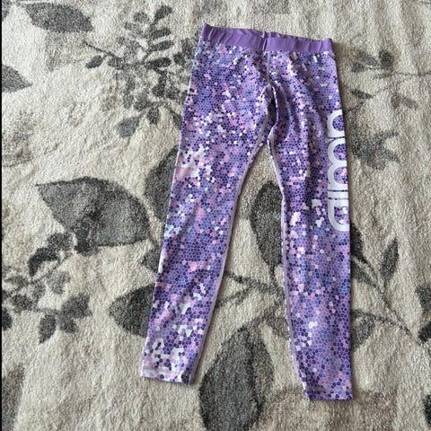 Ny Aim’n treningstights for dame i størrelse M. Tightsen har et flerfarget mønster i lilla, rosa og blåtoner. Den er laget i et elastisk materiale som egner seg for fitness og annen trening. Bred linning gir god støtte rundt midjen. Passer til innendørs og utendørs treningsøkter.
