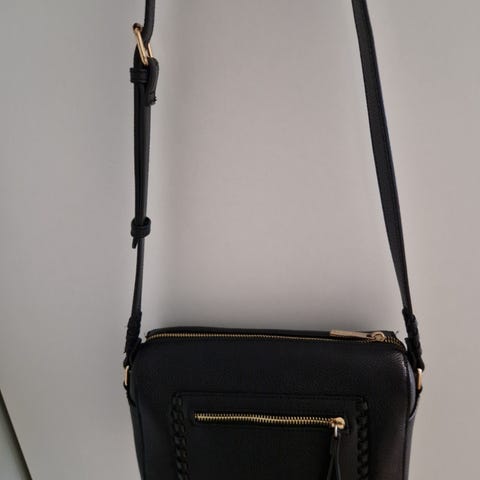 Vesken er laget i lys, hvit kunstlær med bred skulderrem. Den har et romslig hovedrom med mørkt fôr og en innvendig liten lomme. Lukkes med magnetknapp. Egner seg til hverdagsbruk og til å frakte personlige eiendeler som lommebok, mobil og nøkler. Plass til mye!