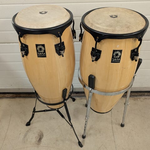 Tycoon percussion trommer på stativ. De kan også tas av stativet og settes på bordet.