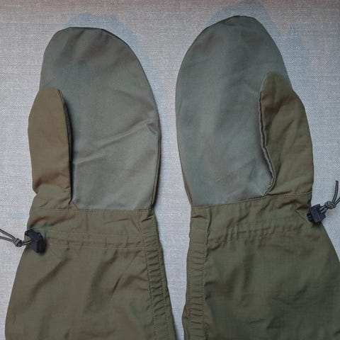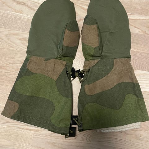 Ullvottene er produsert av Figgjo og vil tro det for hæren men det er også en mulighet for at slike også er laget av Figgjo for et sivilt marked. Disse i grå farge er som sagt veldig sjeldne og det er bare dette paret jeg har for salg. Har ikke sett slike for salg noe sted. Fikk kjøpt noen få par av disse i grå farge av en stor-oppkjøper av utstyr og det er sannsynlig at disse kommer fra en av Forsvarets auksjoner.