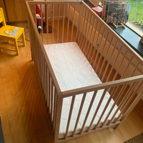 Madrass (IKEA) kan følge med om ønskelig - vi har alltid brukt madrassbeskyttelse.