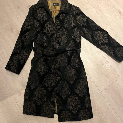 Selger kåpen min billig. Den passer både innendørs og til vårbruk. Brukt kun et par ganger, siden jeg vokste ut av den etter fødselen. Behandlet veldig pent. Ingen rifter, hull eller slitasje, og den er nylig vasket. Kåpen har to fine lommer.