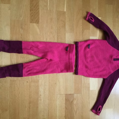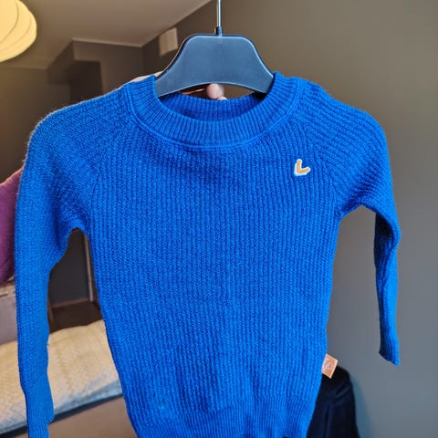 Genser og bukse i str 2 år. Et hull over kneet. Se bilde. Settet kommer med reservetråd.