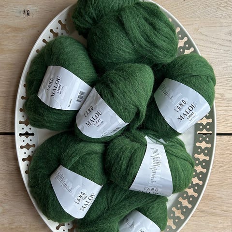 10 nøster merino garn (500g) selges. Har strikket en liten prøveløp av ene nøstet som straks ble rekt opp.