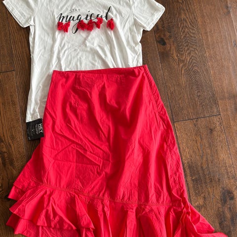Kult fargerikt antrekk som er satt sammen av topp og skjørt, selges, str M!