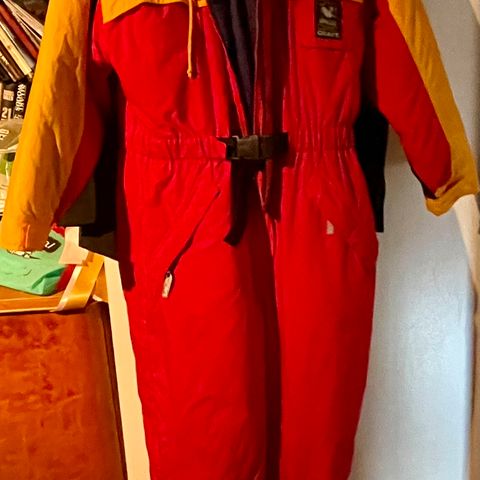 Klassisk blå skidress i str 14 år, med foret bukse og tilhørende anorakk med avtagbar pelskrage, selges samlet.