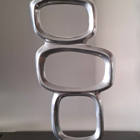 BoConcept skulptur i sølvfarget aluminium?. Abstrakt, organisk form med to buede elementer og tilhørende kuler.