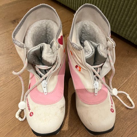Rossignol langrennsko for barn i størrelsen 34. Begge parene har varm, myk innvendig fôr og snøring med glidelås-lukking over vristen. Skoene er beregnet for klassisk langrenn og passer til barn som trenger stabile og varme skisko til bruk i preparerte løyper. Yttermateriale i syntetisk materiale med forsterket tå- og hælparti for bedre slitestyrke.