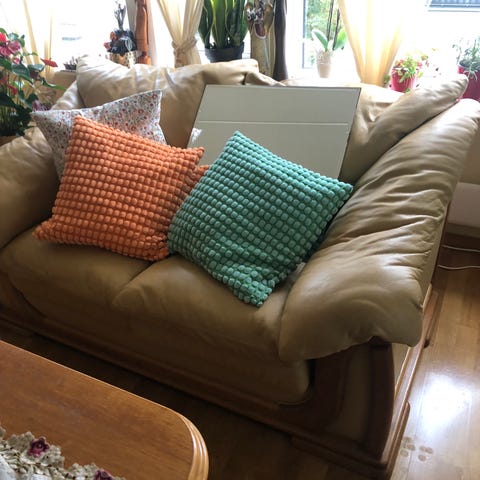 Beige skinnsofa 3 +2 seter