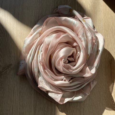Hårbøyle med stor blomst, laget av ekte skinn. Nydelig rosa farge