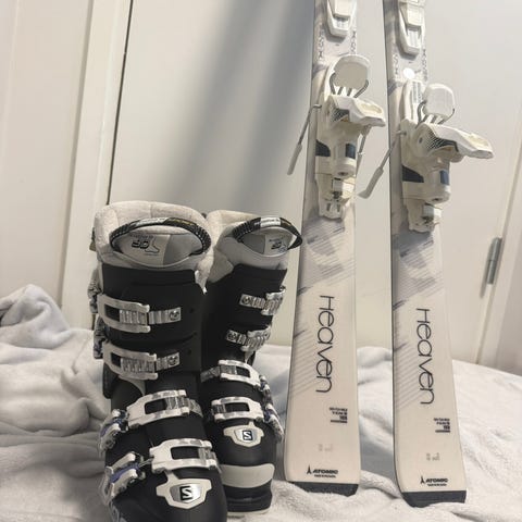 Selger et meget pent brukt komplett alpintsett, perfekt for dame eller junior som ønsker et trygt og lettkjørt carving-oppsett. Alt selges samlet.