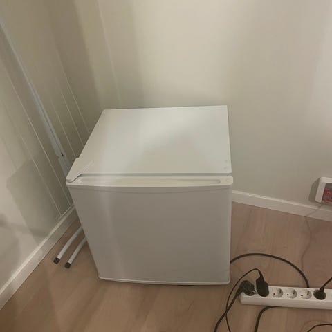 Lite brukt Whirlpool kjøleskap i hvit utførelse. Stått på et gjesterom. 10-15 år gammelt.