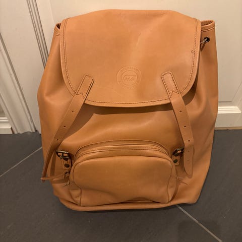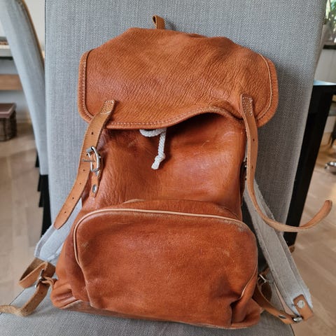 Skinn ransel / skolesekk fra 90-tallet som fremstår som ny. Har stålramme som gjør at den er stødig og solid. Veldig pent brukt. Kjøper betaler frakt.