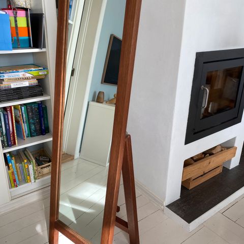 Selger speil, h = 80 cm, bredden varierer fra 34 til 39 cm. Festemiddler medfølger.