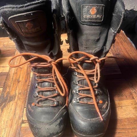 Flotte fjellskisko i lær ( Crispis dyreste modell) Fanaråken meget solid fjellskisko av ypperste kvalitet. Passer BC - Back country bindinger. Middels passform Innersålen måler 25 cm. Kan sendes Post Nord kr 69 eller Posten kr 76 med sporing forsikring (vipps).