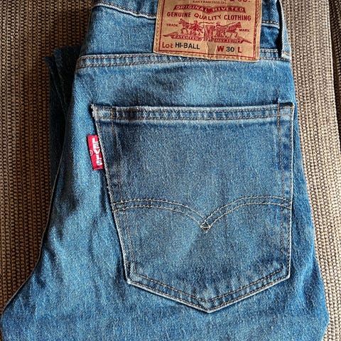 Levi's 501 jeans, størrelsen er midje 36 lengde 34. Den har en del slitte områder, se bilder.