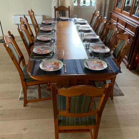 Har en gang blitt brukt som sminkebord men i det siste berre som en tv benk. Den er i fin stand, noe merker oppå men noe av det går sikkert bort. (se bilde)