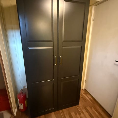 IKEA PAX garderobeskap med Bergsbo dører i fargen hvit. Skapet består av en PAX garderobestamme og to dører. Egnet som klesskap eller oppbevaringsskap på soverom, gang eller annet oppholdsrom. Splitter ny og kjøpt for 1 uke siden. Selges da vi fant ut at str 236 passer allikevel. Kun stamme og 2 dører som selges. Nypris er ca 2700kr