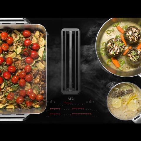 Den integrerte ventilatoren kan brukes til resirkulering eller direkte utluft. Modellen har Hob2Hood-mulighet for styring av ventilasjon fra platetoppen, samt Breeze-funksjon som renser luften rolig etter matlaging.