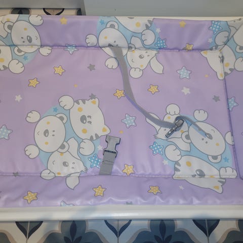 Stellebord til å ha på toppen av vaskemaskin/Tørketrommel. Bordet har høye kanter på sidene for å bidra til at stellematten ligger stødig.