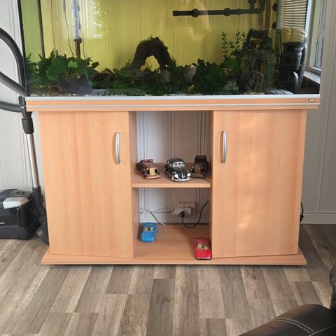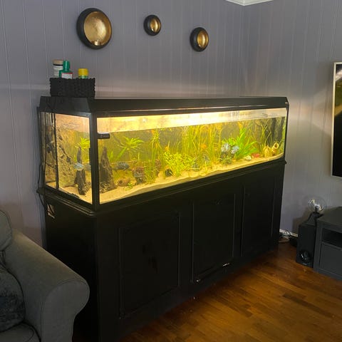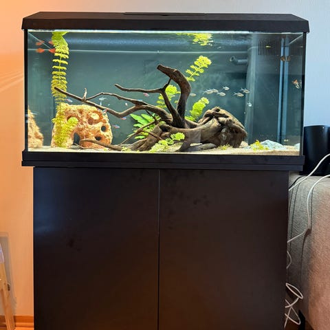 Selger et Juwel Rio 240 L. Det er satt inn ny lystopp i juni 2025. Det er noen riper I glasset, men dette er ikke synlig med vann oppi. Det følger ikke med pumpe/filter. Akvariet står på porsa stativ. Substrat kan følge med om ønskelig. Planter og dekor gjenstander følger ikke med.